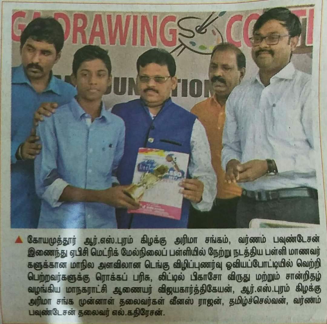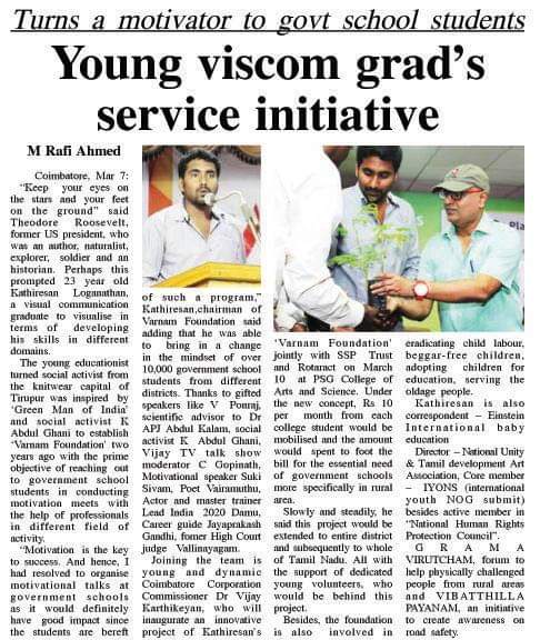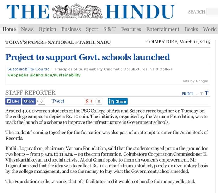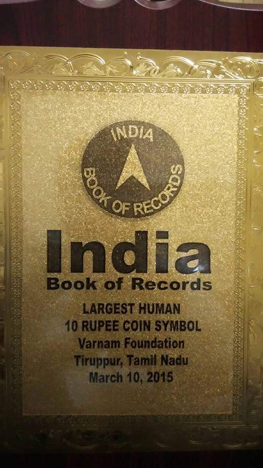 Varnam made a creative social awareness event by forming largest 10Rs coin symbol , in event each students event given 10Rs to help government school students & their important need for education. Event held in PSG college coimbatore, This event news is published in Dina Karan NEWS paper